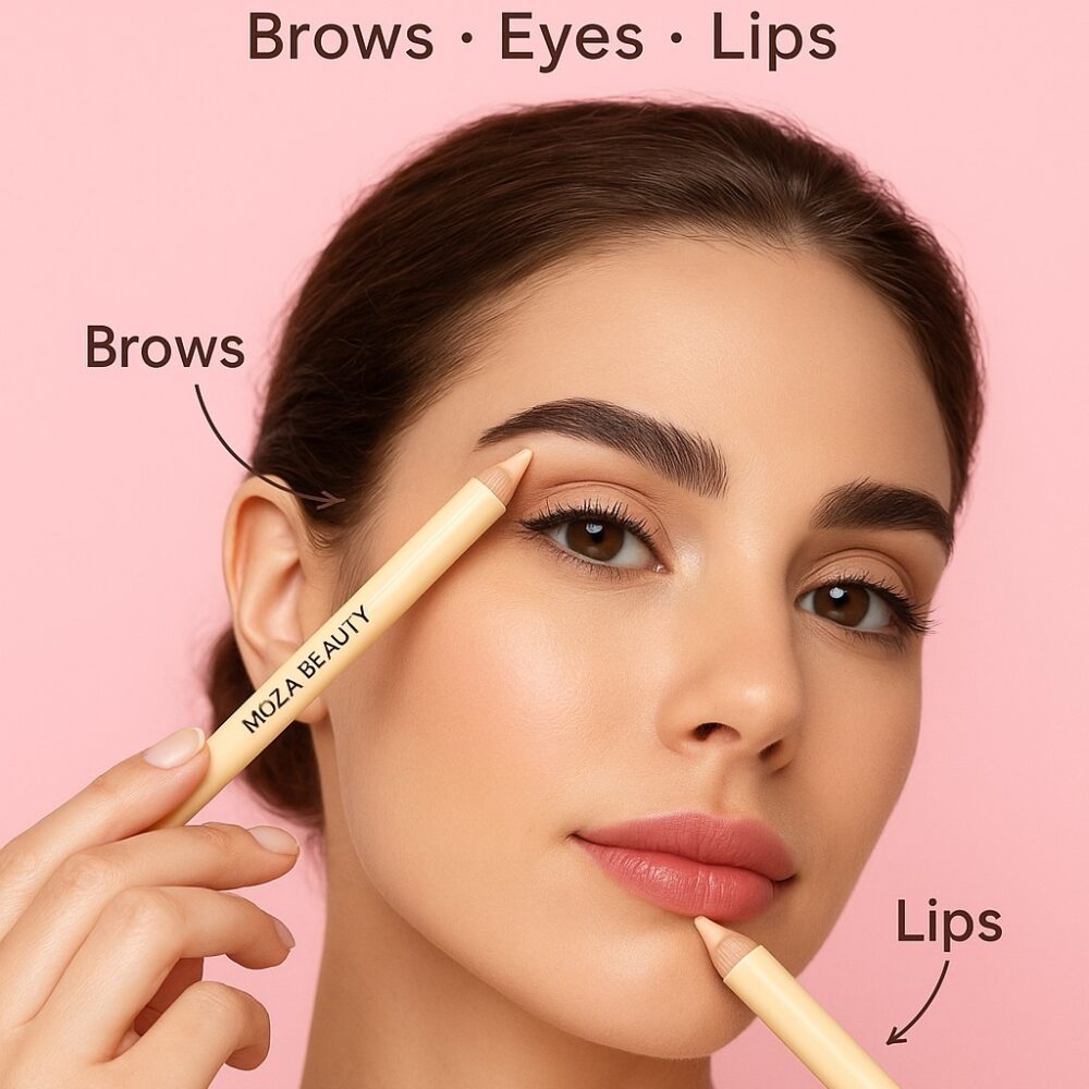 قلم مكياج 4 في 1 من MOZA BEAUTY – عملي، أنيق، ومثالي للسفر💄👛