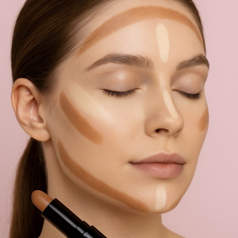 قلم مزدوج للتحكم والتنوير بلونين (بني وبيج) – لمكياج مثالي ونحت ملامح الوجه بدقة🪄