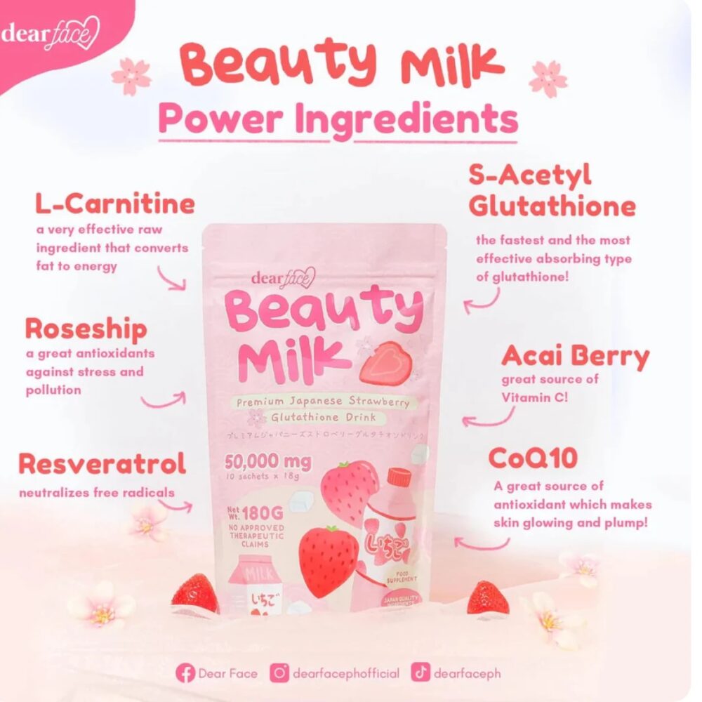 Beauty Milk – مشروب الجلوتاثيون بالفراولة اليابانية من Dear Face